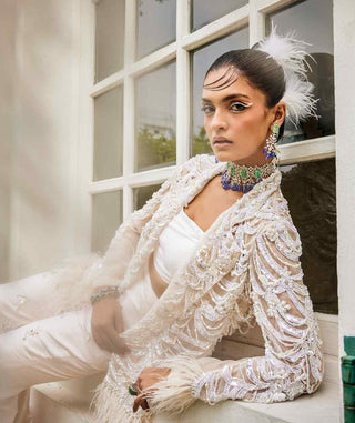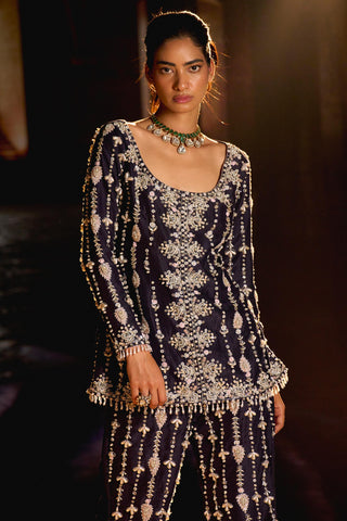 Midnight blue embroidered jacket & pant set