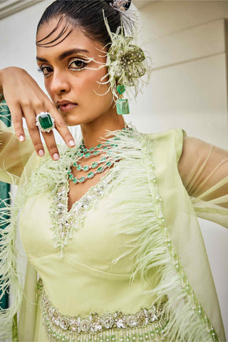 Green festive wedding lehenga set with lurex embroidery