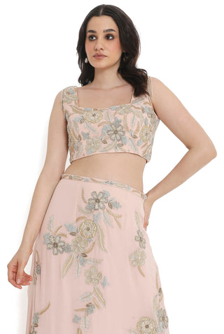 Blush pink embroidered choli with embroidered skirt