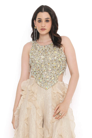 Ivory embroidered choli and ruffled sharara