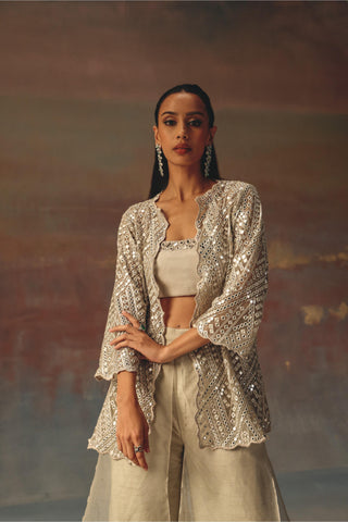 Silver Jacket Sharara Set for Indian Festive Wear by Twenty Nine