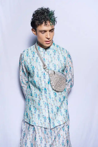 Aalim gray banarasi silk bomber kurta and jogger pants