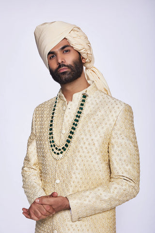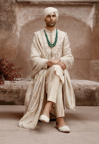 The best outfit for an Indian groom is a sherwani, often paired with churidar or pants. It’s elegant, traditional, and suitable for the wedding ceremony, complemented with a turban and juttis.