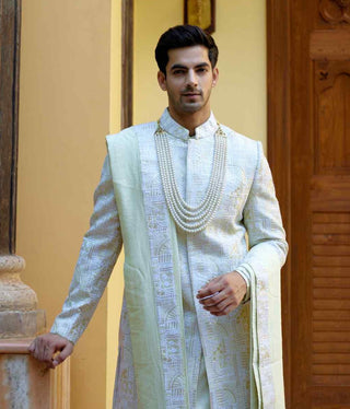 The Groom collection offers an array of refined outfits tailored for the groom’s special day. From sherwanis to tailored suits, these pieces ensure the groom looks effortlessly stylish, adding to the grandeur of the wedding celebration.