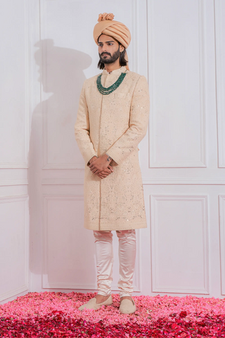 Pearled ivory sherwani set