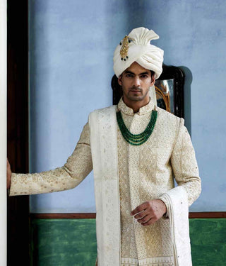 The Groom collection offers an array of refined outfits tailored for the groom’s special day. From sherwanis to tailored suits, these pieces ensure the groom looks effortlessly stylish, adding to the grandeur of the wedding celebration.