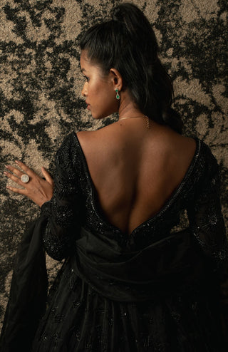 Jacket Skirt Set for Indian Wedding – Black Jacket with Drape Skirt by Ridhi Mehra