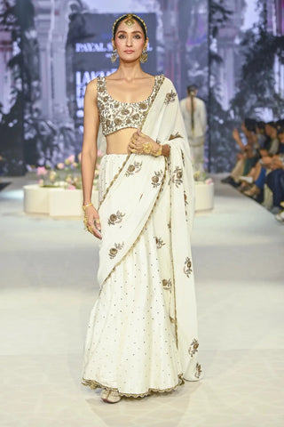 Ivory choli with embroidered saree