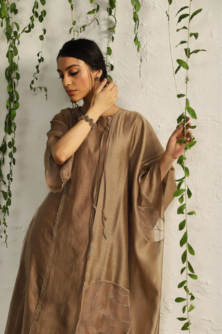 Charkhee's design philosophy embraces minimalism, focusing on the natural elegance of fabrics and refined drapes to enhance inherent radiance. Rather than relying on heavy embellishments, the brand aims to complement authentic beauty, allowing individuality and style to take center stage. Charkhee's approach emphasizes inner confidence and genuine charm, crafting outfits that express true character with grace and poise.