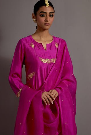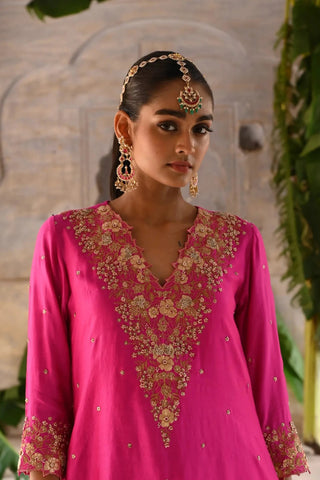 Fuchsia pink necklace guccha embroidered kurta set