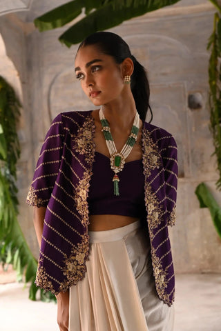 Purple cowl skirt set