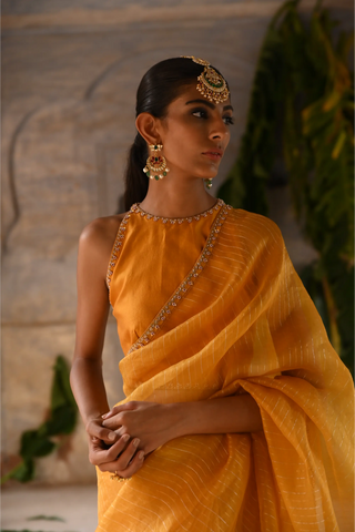 Yellow hand embrodiered saree with blouse