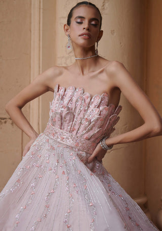 Baby pink organza spikes corset gown