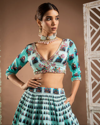 Blue ombre digital print indo-lehenga set