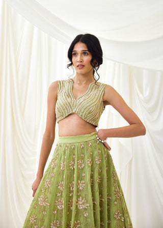 Black thread and mirror hand embroidered sunset bloom lehenga set