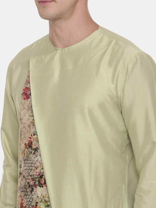 Beige printed silk kurta