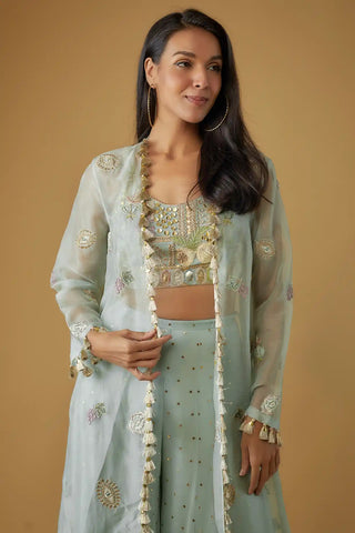 Aqua embroidered choli with ruffled sharara