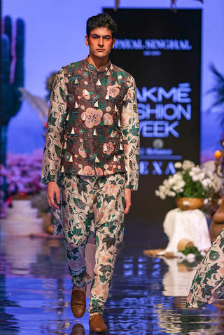 PS Men by Payal Singhal embraces contemporary Indian wear with a collection of sherwanis, bandi sets, bomber kurtas, jogger pant sets, silk kurta sets, and shirts in signature prints.