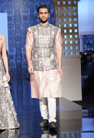 PS Men by Payal Singhal embraces contemporary Indian wear with a collection of sherwanis, bandi sets, bomber kurtas, jogger pant sets, silk kurta sets, and shirts in signature prints.