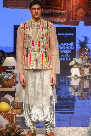PS Men by Payal Singhal embraces contemporary Indian wear with a collection of sherwanis, bandi sets, bomber kurtas, jogger pant sets, silk kurta sets, and shirts in signature prints.
