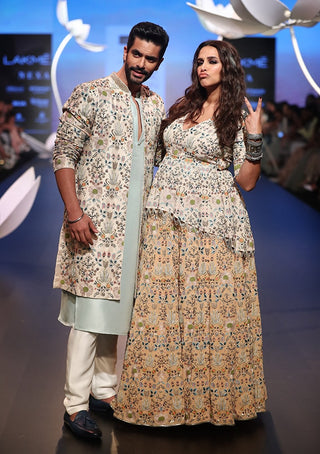 PS Men by Payal Singhal embraces contemporary Indian wear with a collection of sherwanis, bandi sets, bomber kurtas, jogger pant sets, silk kurta sets, and shirts in signature prints.