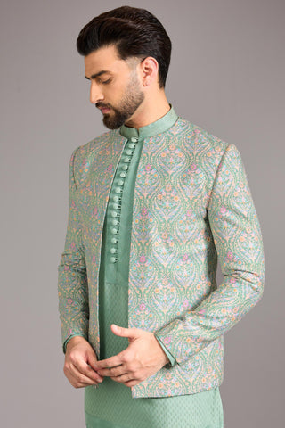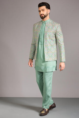 Green dola silk indowestern set