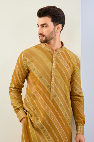 Haldi yellow georgette lined kurta with matching cotton silk pant