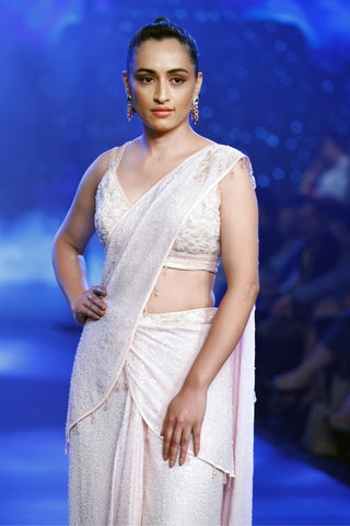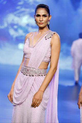 Lilac embroidered sticthed saree set