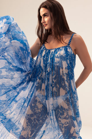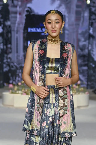 Blue embroidered forest whisper printed bandi and printed kurta with churidar