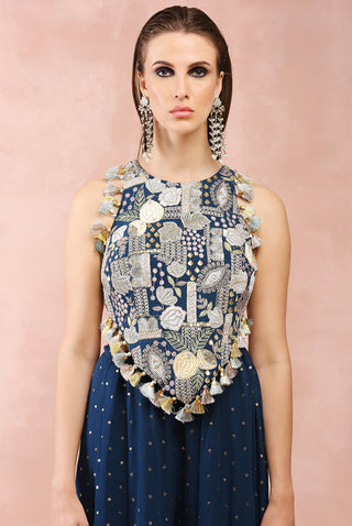 Teal blue embroidered choli and sharara