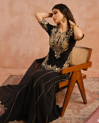 Black bagh embroidered kurta and sharara set