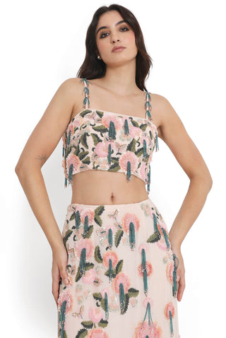 Blush pink embroidered choli with slit skirt