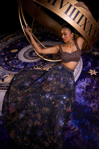 Drape Saree for Wedding Reception – Black Cocktail Stardust Cascade by Babita Malkani