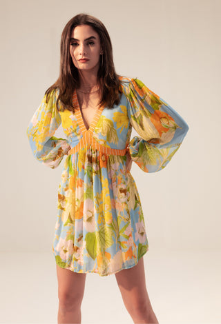 Light blue multicolor iris short dress