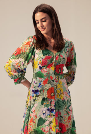 Green-multicolor eden midi dress