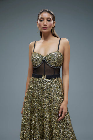 Gold sequence corset with chain gown