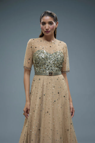 Multicolour net sequence gown