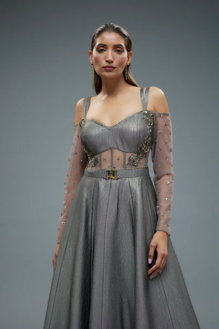 Grey polylurex and net pachwork gown