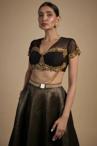 Gold embroidered blouse with lehenga