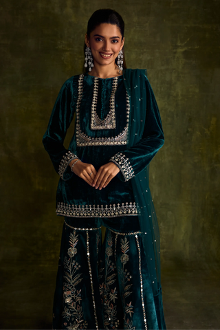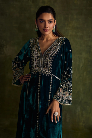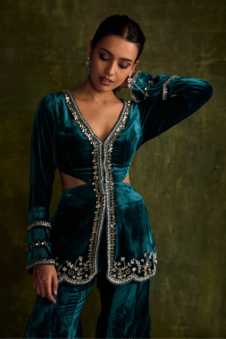 Sanya Gulati’s designs stand out with their playful elegance and a focus on versatile luxury. Her collections feature a vibrant mix of rich fabrics, intricate detailing, and contemporary silhouettes, from flowy lehengas to structured blouses. The designs are infused with a modern edge while staying deeply rooted in traditional Indian aesthetics, offering pieces that are both bold and delicate, suitable for a range of occasions. The label captures a youthful spirit while embracing a sophisticated, timeless appeal.
