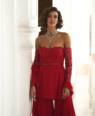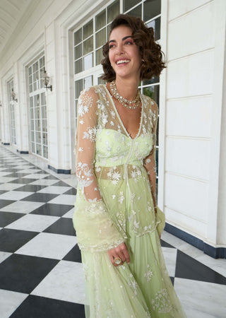 Sanya Gulati’s designs stand out with their playful elegance and a focus on versatile luxury. Her collections feature a vibrant mix of rich fabrics, intricate detailing, and contemporary silhouettes, from flowy lehengas to structured blouses. The designs are infused with a modern edge while staying deeply rooted in traditional Indian aesthetics, offering pieces that are both bold and delicate, suitable for a range of occasions. The label captures a youthful spirit while embracing a sophisticated, timeless appeal.
