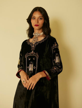 Velvet Kaftan Set for Evening Wear – Black Makhmal by Sarang Kaur