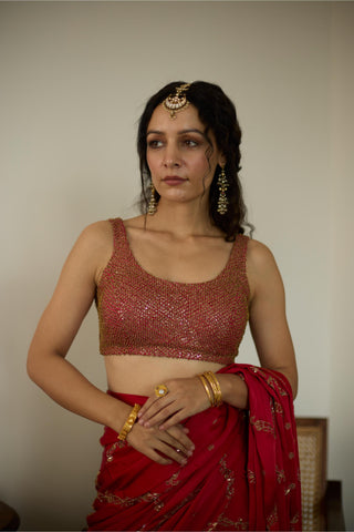 Red maitreyi hand embroidered saree