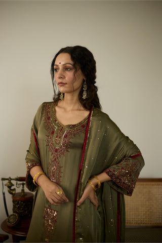 Green saanjh hand embroidered kurta set