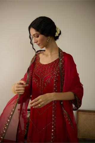 Red diya hand embroidered kurta set