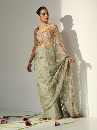 Green mansa saree and blouse piece