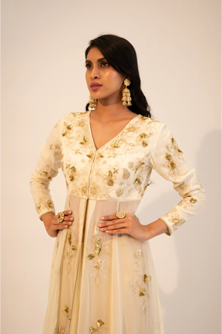 Ivory embroidered open anarkali paired with lehenga & dupatta