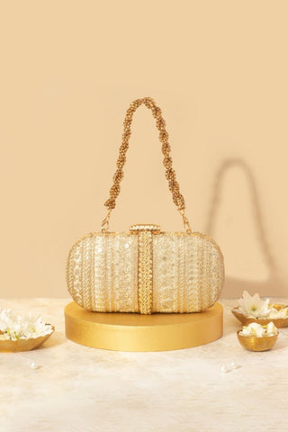 Gold naaz embroidered capsule clutch