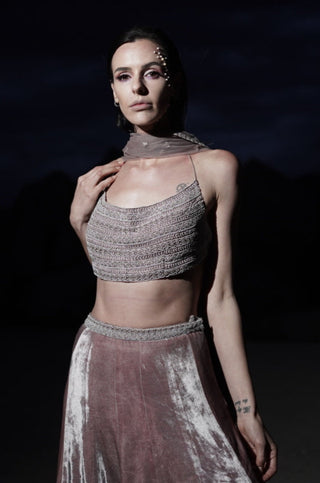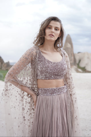 Dusty purple half embroidered scallop border lehenga set