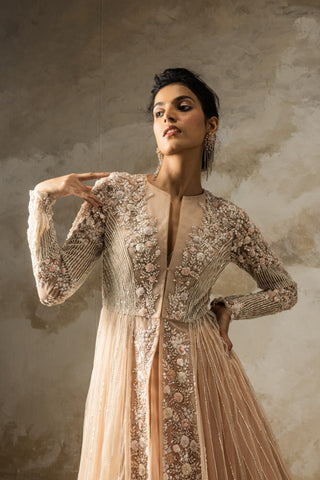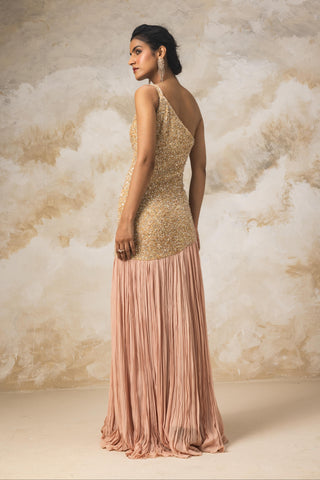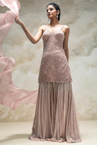 Peach heavy embroidered corset short kurta and sharara set